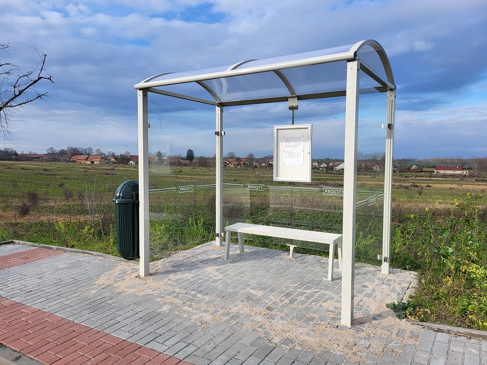 v roce 2022 jsme realizovali výrobu a montáž 3 ks nových designových autobusových zastávek v obci Stradouň v rámci projektu I/17 Stradouň - úpravy komunikace.